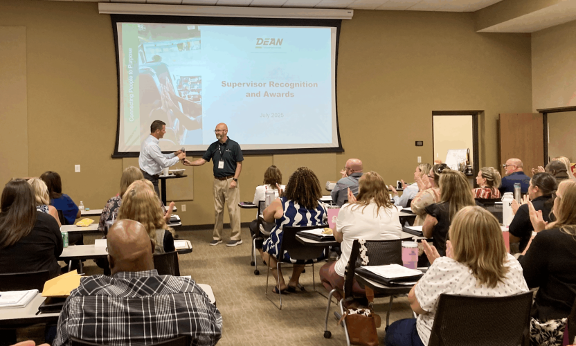 This year, we had two recipients for our Supervisor of the Year award — Trish Tester and Matt Speer. This award recognizes Dean Transportation supervisors who live the mission and values of Dean. These individuals have exceeded their responsibilities as transportation leaders and improved their operations to benefit their colleagues and community.